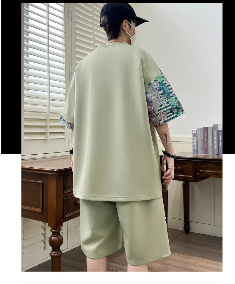 Summer Men's Sets Mens Trend Casual Tracksuit Print Short Sleeve T-shirt+shorts Two Pieces Suit Mens Sportswear set